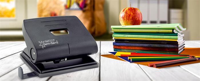 Lyukasztó, kétlyukú, 22 lap, antibakteriális, RAPESCO "820-P", fekete