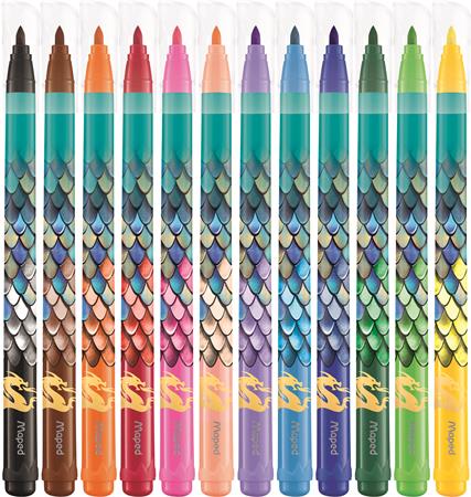 KezdőlapIrodaszerekÍrószerekFilctollakFilctoll készlet, 2,8 mm, kimosható, MAPED „Dragon sárkány”, 12 különböző szín